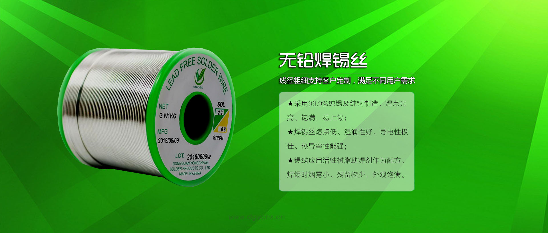 |  | 東莞市永成焊錫制品有限公司坐落于東莞市黃江鎮(zhèn),擁有近6000平方米的廠房,其中生產(chǎn)車間3300平方米,130平方米實(shí)驗(yàn)室,780多平方米的獨(dú)立辦公樓,1500多平方米的宿舍樓。 我們一直致力于焊錫制品及相關(guān)產(chǎn)品之研發(fā)、生產(chǎn)、銷售。擁有先進(jìn)的全自動(dòng)化生產(chǎn)設(shè)備及高精度金屬光譜檢測(cè)設(shè)備,以雄厚的實(shí)力和卓有成效之管理,為現(xiàn)代高科技電子制造廠商提供高品質(zhì)的焊錫產(chǎn)品及焊接工藝技術(shù)服務(wù)。 我們公司無(wú)鉛環(huán)保產(chǎn)品采用高品質(zhì)原材料,使用先進(jìn)的生產(chǎn)和品質(zhì)檢測(cè)設(shè)備并配合經(jīng)驗(yàn)豐富的工程師、化驗(yàn)師進(jìn)行生產(chǎn)、保證產(chǎn)品品質(zhì),達(dá)到GB、JIS、AISN及SGS等國(guó)際性標(biāo)準(zhǔn)要求。 公司以“客戶至上、品質(zhì)為先”的服務(wù)宗旨,具有年產(chǎn)環(huán)保錫1000噸,無(wú)鉛錫條、無(wú)鉛錫絲、環(huán)保助焊劑、無(wú)鹵錫膏等每月生產(chǎn)能力80噸。公司本著以“質(zhì)量求生存、以科技求發(fā)展、以信譽(yù)求市場(chǎng)、以共贏求利益”的原則,將一如既往的把廣大客戶作為尊貴的朋友,為客戶提供高品質(zhì)的焊錫產(chǎn)品以及完善周到的售后服務(wù)。 |